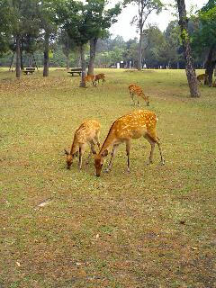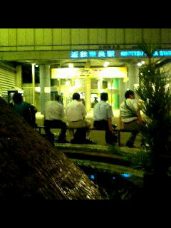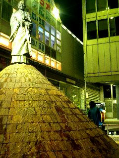 駅前に行基菩薩像の立つ噴水がある。その傍らで、ギター片手に歌う青年が一人。ブルーハーツや尾崎を歌う。 そこへ仕事帰りのサラリーマン四人組が現れる。一杯やった後なのだろう。そのギター青年にからみ出す。 「尾崎は歌うか?」四人組のリーダー格のおっちゃんが話しかける。それに応えて、尾崎の「OH MY LITTLE GIRL」を歌い出すギター青年。サビに入り、一緒に歌うおっちゃん連中。 「おい兄ちゃん、あんたも歌え!」いきなり俺にも、おっちゃんから声がかかる。輪に入り一緒に歌うはめに。今度はブルーハーツの「TRAIN-TRAIN」。まったく楽しい人たちだ。 おっちゃんらが帰った後、ギター青年と少し話しする。農業高校出身ということ、インディーズでがんばっとるということ、いつもは明け方近くまでやっているが今夜は珍しく警察が見回りしてて彼の路駐の愛車が危ういから早々に退散するということ、奈良の空気は美味いということ。俺も、農家の仕事のこととかを話す。最後はかたい握手。奈良にまた来たいと思う理由がもう一つ増えた。