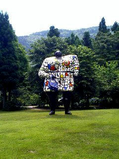9:00、箱根彫刻の森美術館へ。ムーアの彫刻やピカソの絵皿などを見て、かなりの時間をつぶす。特に彫刻は周りの山々や芝生、それに今日の青空に溶け込み、また見る場所によっては映えてきて、この美術館の構想をした人、彫刻の配置を考えた人はすごい人だなどと思う。