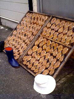 7:40、網代。魚の干物が並べてあった。
