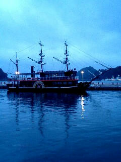20:00過ぎ、下田温泉に入る。これまた黒船の見える、その名もホテル黒船。風呂も黒船をイメージしているような。いい湯だった。