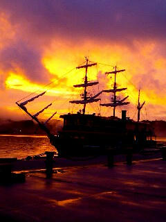 19:01、やった~!下田に着いた。黒船が浮かぶ。ペリー来航の下田である。黒船の浮かぶそばに、道の駅開国下田みなとがある。「開国」である。おそらく道の駅の中で最もユーモアのある名前。
