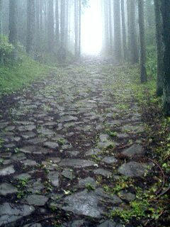 15:20、笹原一里塚通過。ここから300mほど旧街道の石畳を行く。箱根路は坂が急でローム層の土は滑りやすく、その対策に石が敷かれたらしい。しかし、実際に歩いてみると雨や霧で濡れた石畳も滑りやすく、とても歩きづらかった。