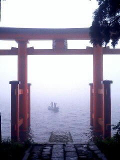 6:45、箱根神社。携帯を拾ってくれた方はここにお参りに来ていた。朝早くから!信心深い人だ。彼曰わく「神は信じるが信者ではない」。難しいがなんとなく分かる気がする。