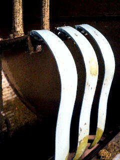 茶渋取りは大変なのです。揉み機に、多いところでは厚さ1㎝もあるかと思うほど、しっかり茶渋がついています。今日一日の締めの一仕事として、最後、一汗流します。