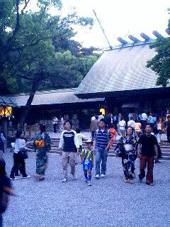 16:48、熱田神宮着。人は多いし、出店は出とうし、浴衣やし、こ、これは祭りだぁ!境内には太鼓と笛の音が響く。見ると子どもたちが太鼓をたたき笛を吹いている。いやいや、よい響きですよ。
