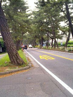 7:40、豊川市入り。御油ノ松並木。この松並木にはかなり立派な松が何本も立っていて、すごい。やはり、国の天然記念物で「日本の名松百選」にも選ばれているそうだ。