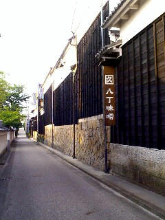、矢作川通過。矢作川を渡り終えてすぐ右折すると、岡崎の名産、八丁味噌の蔵が立ち並ぶ八丁蔵通りを通る。これは壮観である。実は今やりよるNHKの朝ドラ「純情きらり」の舞台が岡崎で、この通りでロケが行われたそうな。