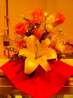 おかみさんは、フラワーアレンジメントもたしなむ。